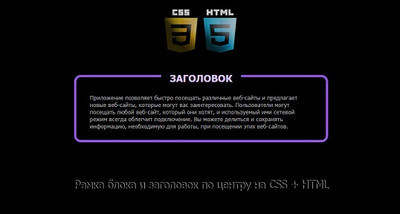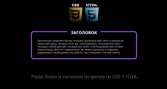 Скачать Рамка блока и заголовок по центру на CSS
