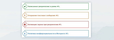 Здесь идет простая рамка, которая может преображать любой заданный вами оттенок, но изначально вся цветовая гамма идет по умолчанию. Где красный цвет идет больше на предупреждение, так как можно по левой стороне наблюдать знаки. А это означает, что вы самостоятельно можете выставить свою форму уведомлений, которая красиво вписывалась в основную стилистику сайта или страницу. Такой небольшой дизайн, кардинально изменит видимость материала, что преобразит его для красоты.
