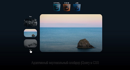 Адаптивный слайдер изображений является одним из главных фактор на тематическом сайте, который увеличивает уровень продуктивности любого сайта. Как этот вертикальный слайдер, где по дизайн он смотрится как стандартный, плюс к нему закреплены миниатюры с левой стороны. Также он отлично показывает, а точнее выводит картинки на разным моделях, где идет от широкого экрана, до небольшого мобильного аппарата.