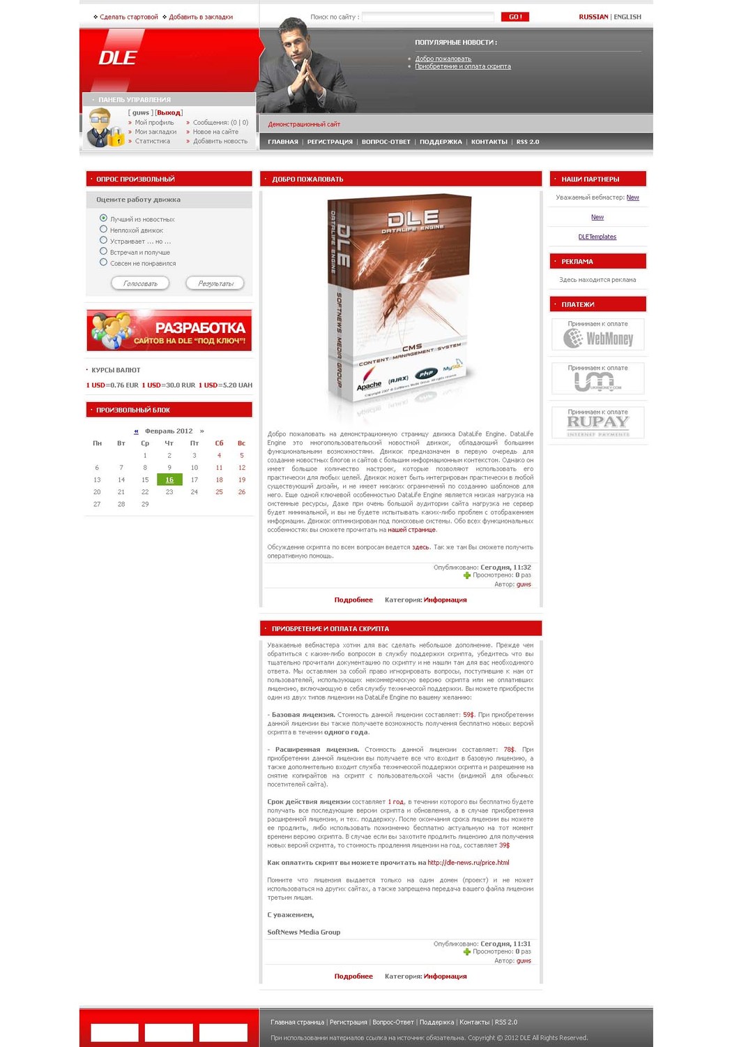 У нас вы всегда можете найти новые и бесплатные шаблоны для движка DataLife Engine. Выбирайте их по цветам, по типам и по версиям cms. На этой странице вы можете скачать EXTM v.2 для DataLife Engine 9.5 бесплатно, без регистрации, и по прямой ссылке! Наш сайт предлагает только лучшие и самые качественные темы. Просто качайте...